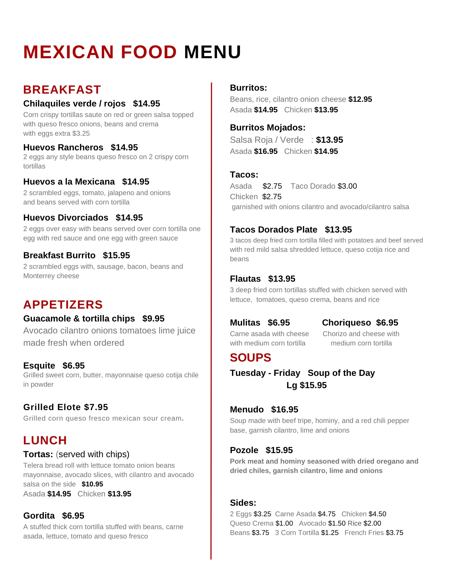 OUR MENU